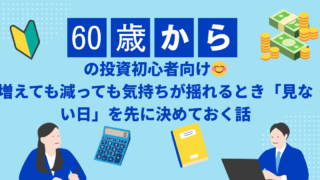 投資の実践日記 【第59回】60歳からの投資初心者向け😊増えても減っても気持ちが揺れるとき「見ない日」を先に決めておく話 60歳から投資を考える初心者向け。増えても減っても気持ちが揺れる人に向けて、金額を見る日をあらかじめ決める具体的な方法を解説。無理なく続けたい人向け。 2026.02.23 投資の実践日記株式投資