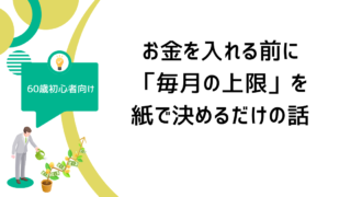 投資の実践日記 【58回】60歳からの投資初心者向け😊お金を入れる前に「毎月の上限」を紙で決めるだけの話 60歳から投資を考える初心者向け。お金を入れる前に、毎月いくらまでなら安心かを紙で決める具体手順を解説。無理せず判断したい人向け。 2026.02.14 投資の実践日記株式投資